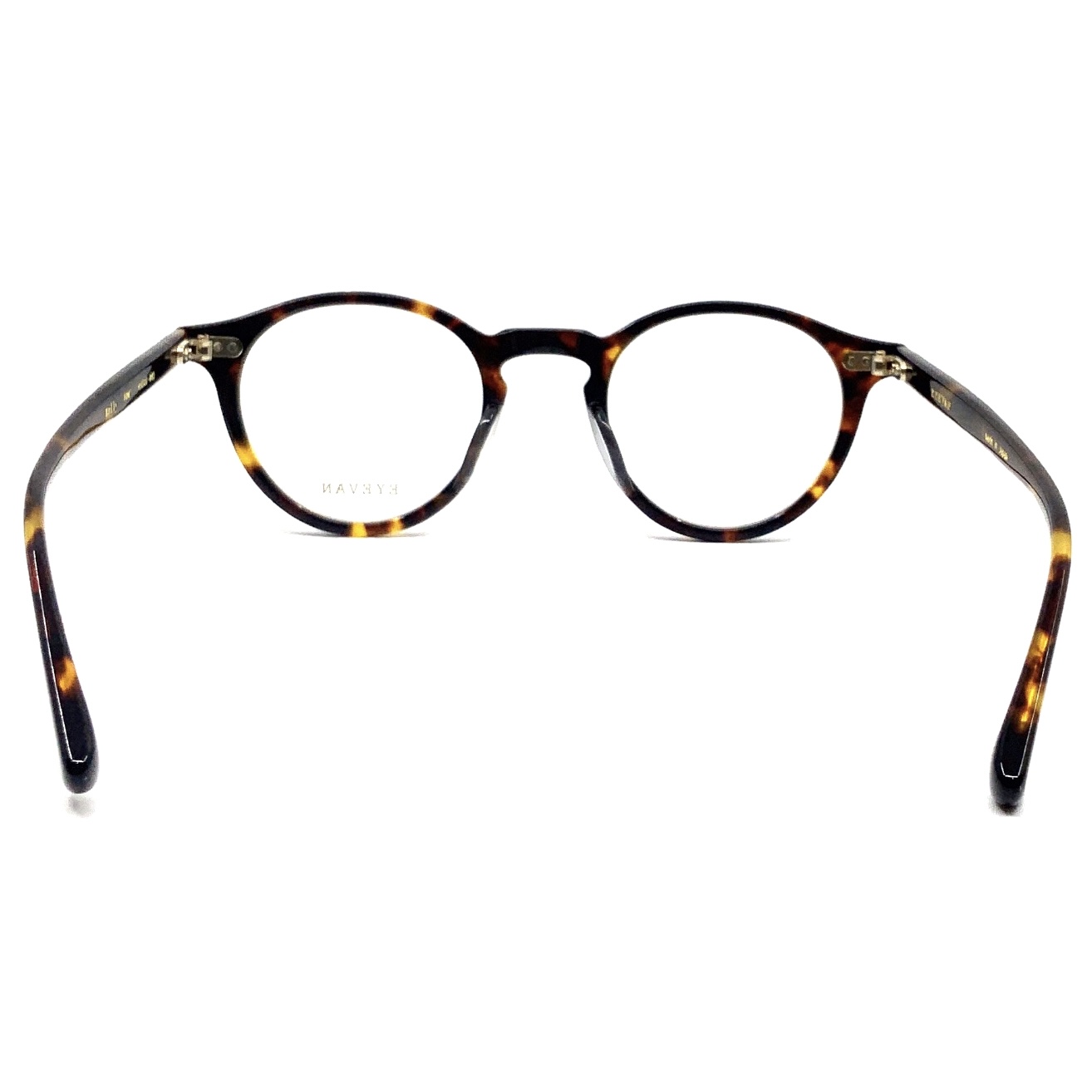 EYEVANが今一番美しいと考える究極のボストン(パント)シェイプを具現化したプラスチックフレーム。テンプルは1950年代のヴィンテージフレームを着想源に柔らかいラインでデザイン。丁番は立体的なディテールが美しい、職人による昔ながらの製法である置き丁番を採用し細部まで忠実にヴィンテージのディテールにこだわった。またかしめ飾りは立体的なディテールにこだわり、このフレームに合わせて一からデザインした。