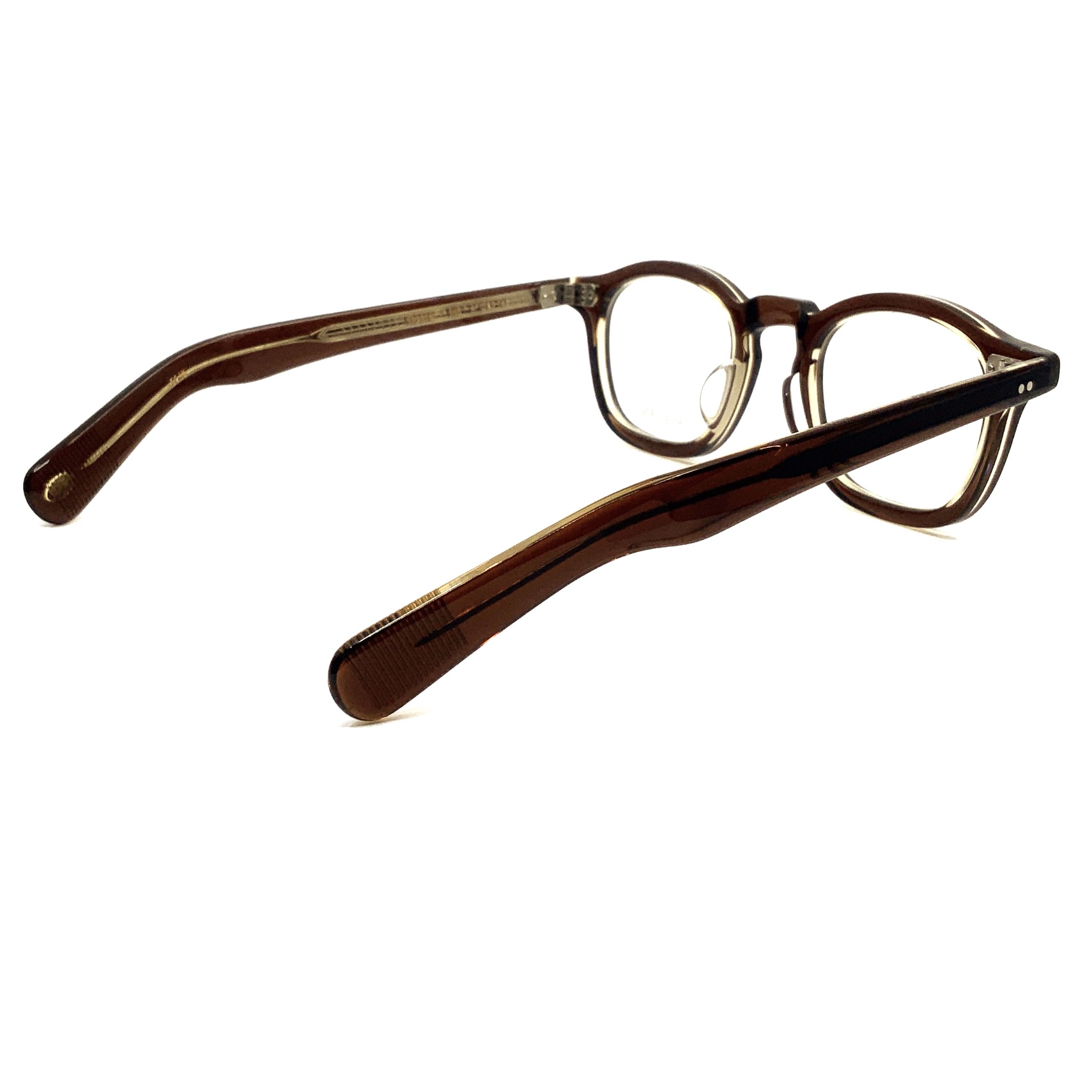 エッヂのある肉厚なフロントと極太なワイドテンプルによって表現した、フレンチヴィンテージシリーズのニューモデル。50年代に作られた細めのラインのフレンチウェリントンをベースに徐々に厚みを加えてデザインしたフロントに、40年代以前のノー芯で作られたフレームの独特な雰囲気を持つテンプルデザインをあわせた。製法は独自の置き丁番でのカシメ技法を採用し、EYEVANが考えるフレンチヴィンテージをネクストヴィンテージとして更に一歩先へ進めたモデル。