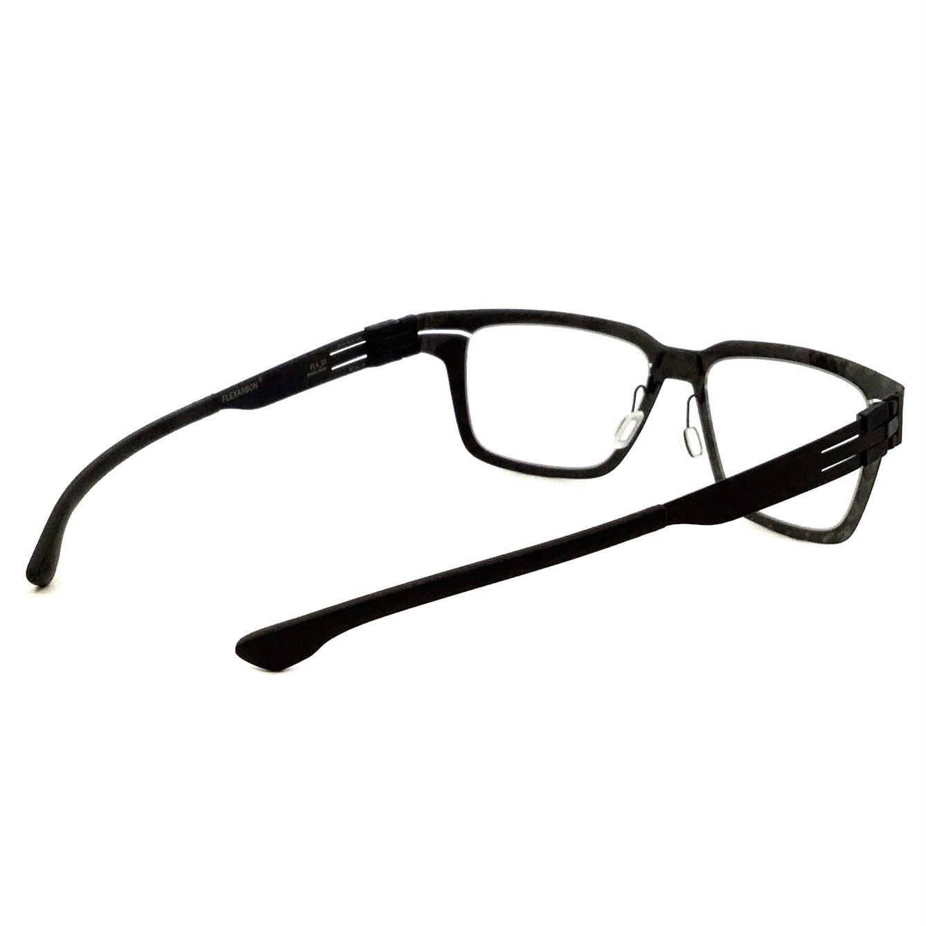 革新的なアイウェアブランドとして名高いアイシーベルリンが、画期的な力 ーボンを採用した新作を発表した。何とこのカーボンは航空宇宙技術を取り 入れた極秘の製法から生まれたもので、完成までに3年間もの研究を要した という。カーボンの名は"フレキサボン"。写真のモデルはそのフレキサボン のフロントパーッに、ブランドを象徴するシート状のステンレス製テンプル を組み合わせた。元々が驚くほどの軽さを持ち味とするブランドなのだが、 フレキサボンの採用によりそれがさらに際立つ眼鏡フレームに仕上がってい るのだ。最先端技術から生まれた、軽やかでモダンな個性を堪能してほしい。