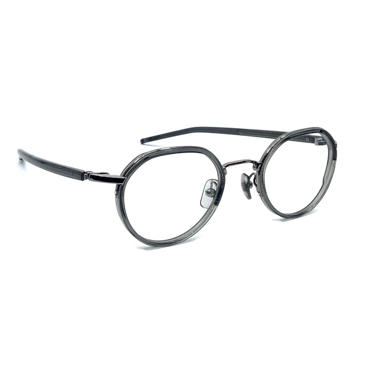 プラスチックリムの柔和な印象と、智元からテンプルに掛けてのフラットでシャープな表情。M-48シリーズは、ソフトリムの特徴的な雰囲気を活かし、異素材のコンビネーションを緻密な設計によって、誰もが掛けやすいスタイルへと昇華させたシリーズです。