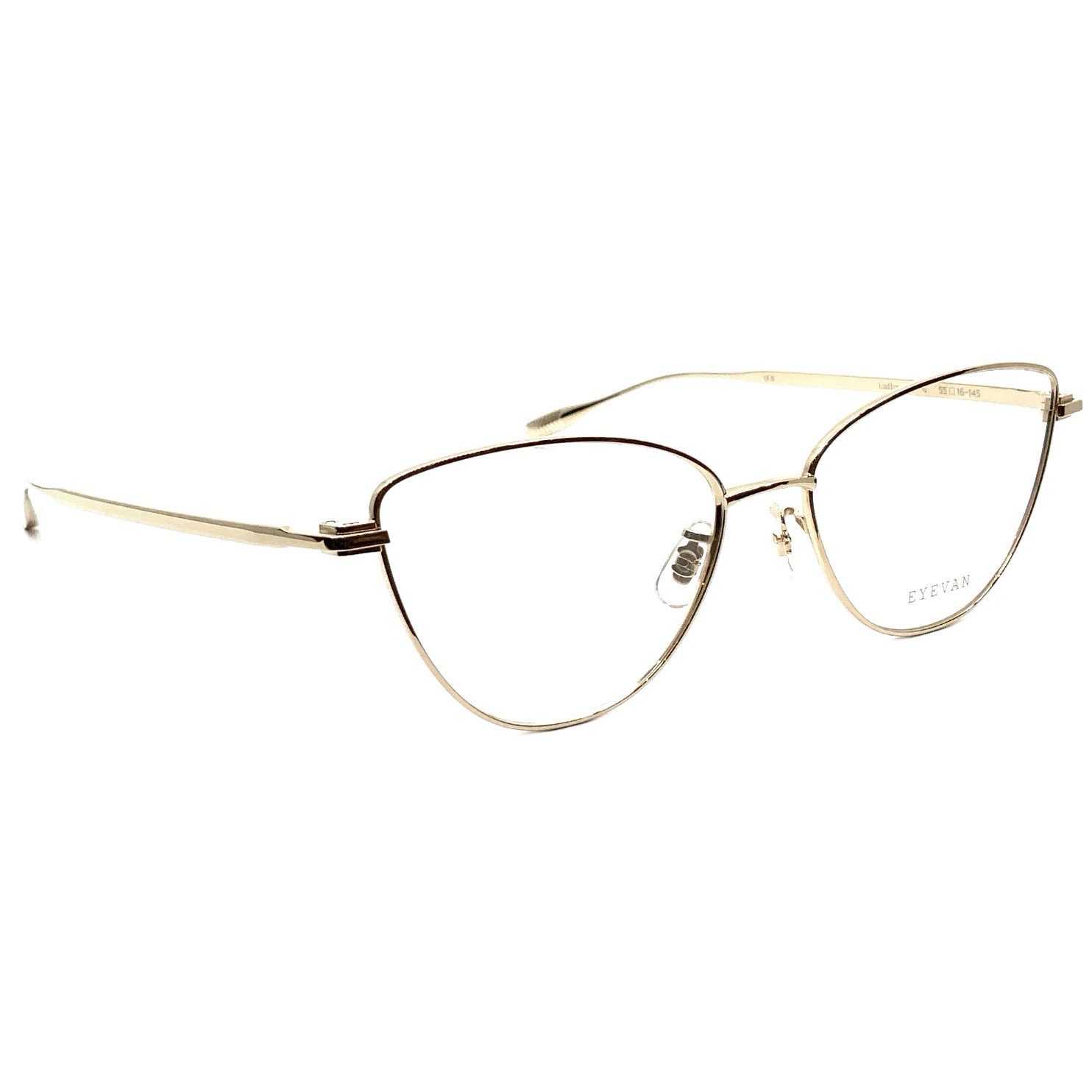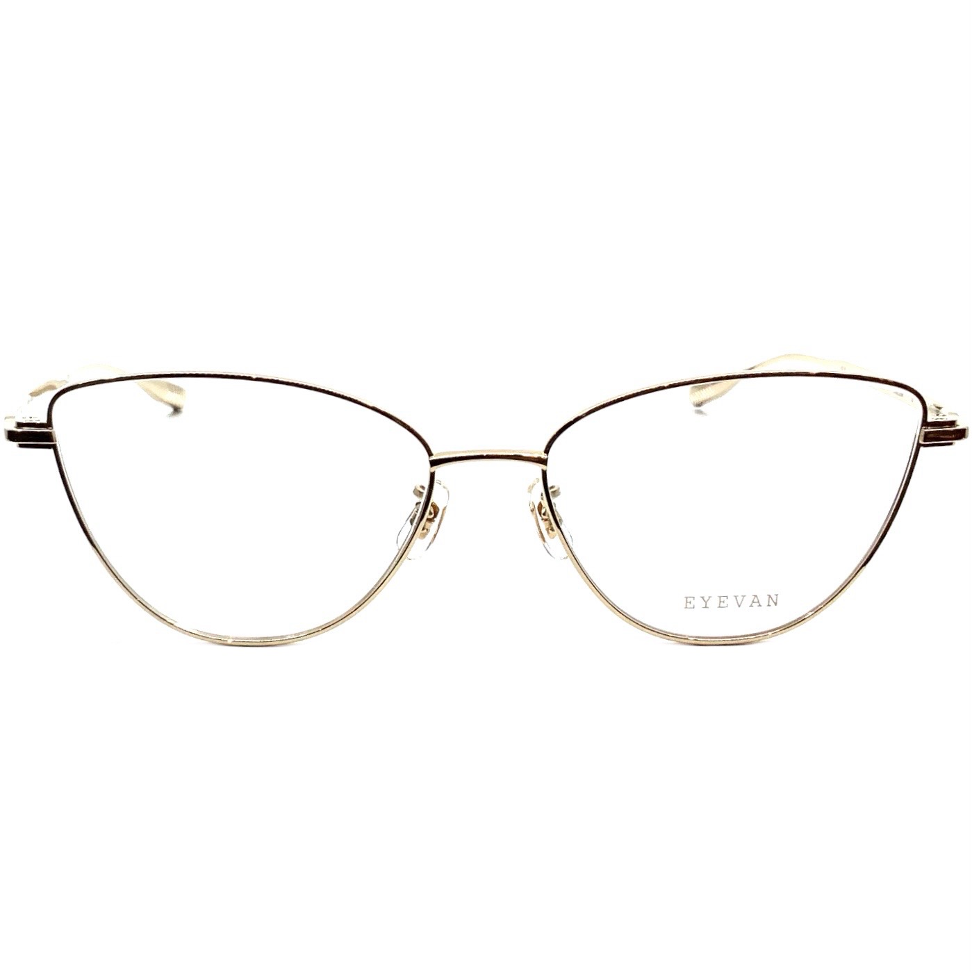 テンプルがヨロイに部分的に重なる特殊構造を踏襲した、2024AWモデル『Harve』のアップデート版。レンズシェイプは1980年代のイタリア製メタルフレームからサンプリングされており、特徴的なFOXシェイプに、すべてのパーツからエングレービング(彫金装飾)を排したミニマルなルックが組み合わされている。現代のEYEVANが提示する“ニューヴィンテージ”の解釈を体現したモデル。